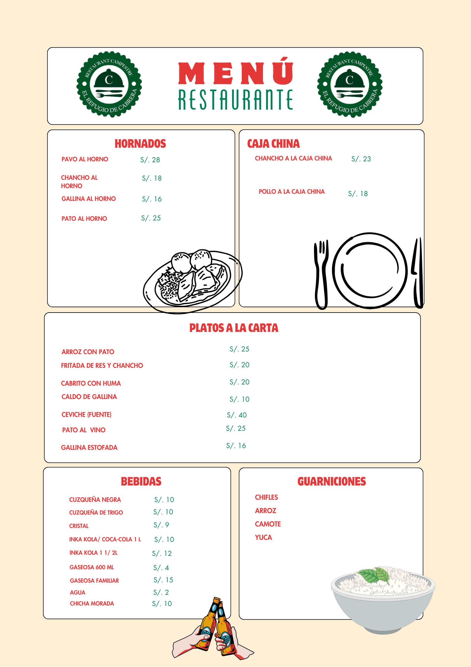S/. 25.00El Arroz con Pato es de esos platos que no puedes dejar de probar. Sabor único, suave, jugoso y perfecto para compartir en buena compañía